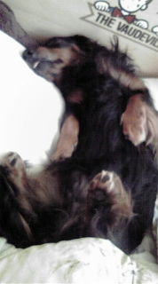 私のベットで寝る愛犬
